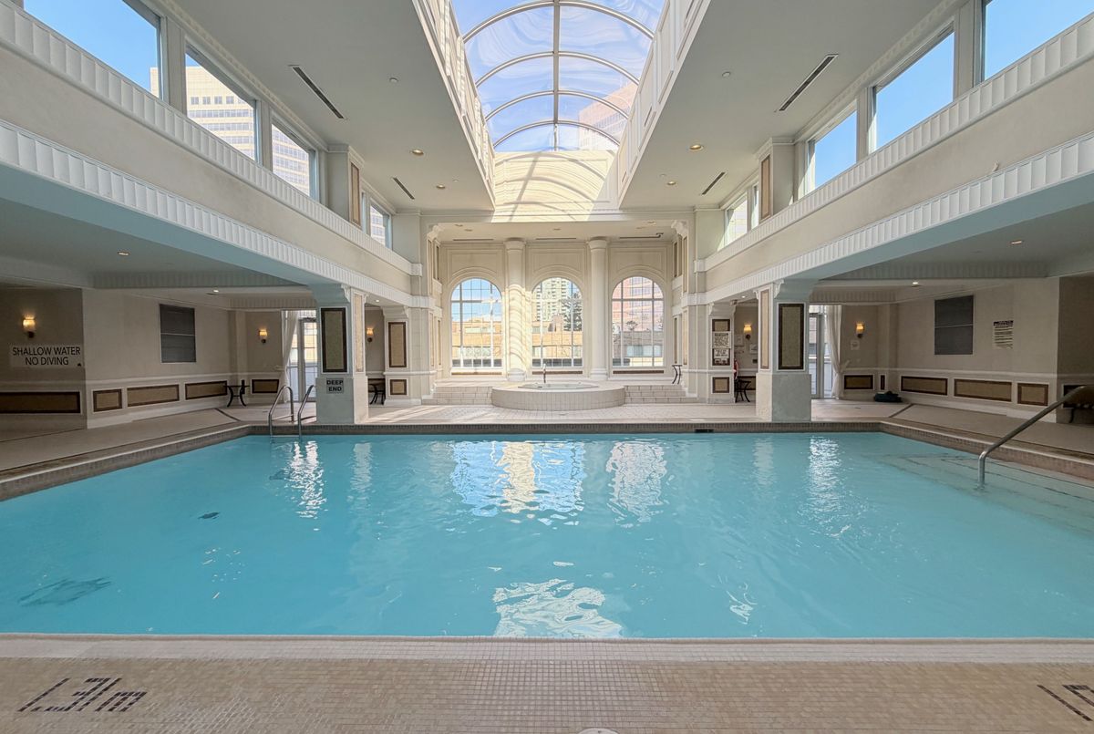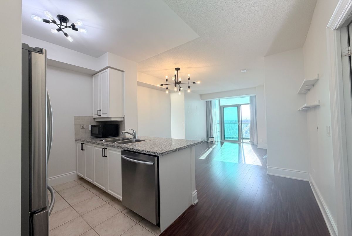 Rarely Offered High-Floor Gem at "Meridian" by Tridel. Experience elevated living in this bright & spacious 2-bdrm, 2-bath suite featuring soaring 9ft ceilings-a premium upgrade that enhances natural light and airiness. This meticulously maintained unit boasts a desirable split-bedroom layout for maximum privacy, freshly painted interiors, and newly installed laminate flooring throughout. The modern kitchen features granite countertops and seamless flow into the open-concept living area. Step out to your private terrace for outdoor relaxation. Enjoy world-class amenities: 24hr concierge, grand 2-storey lobby, indoor pool, gym, golf simulator, and more. Unbeatable location at Yonge & Finch: steps to Finch Station (Subway/VIVA/GO), shopping, and dining. Includes 1 Parking & 1 Locker.